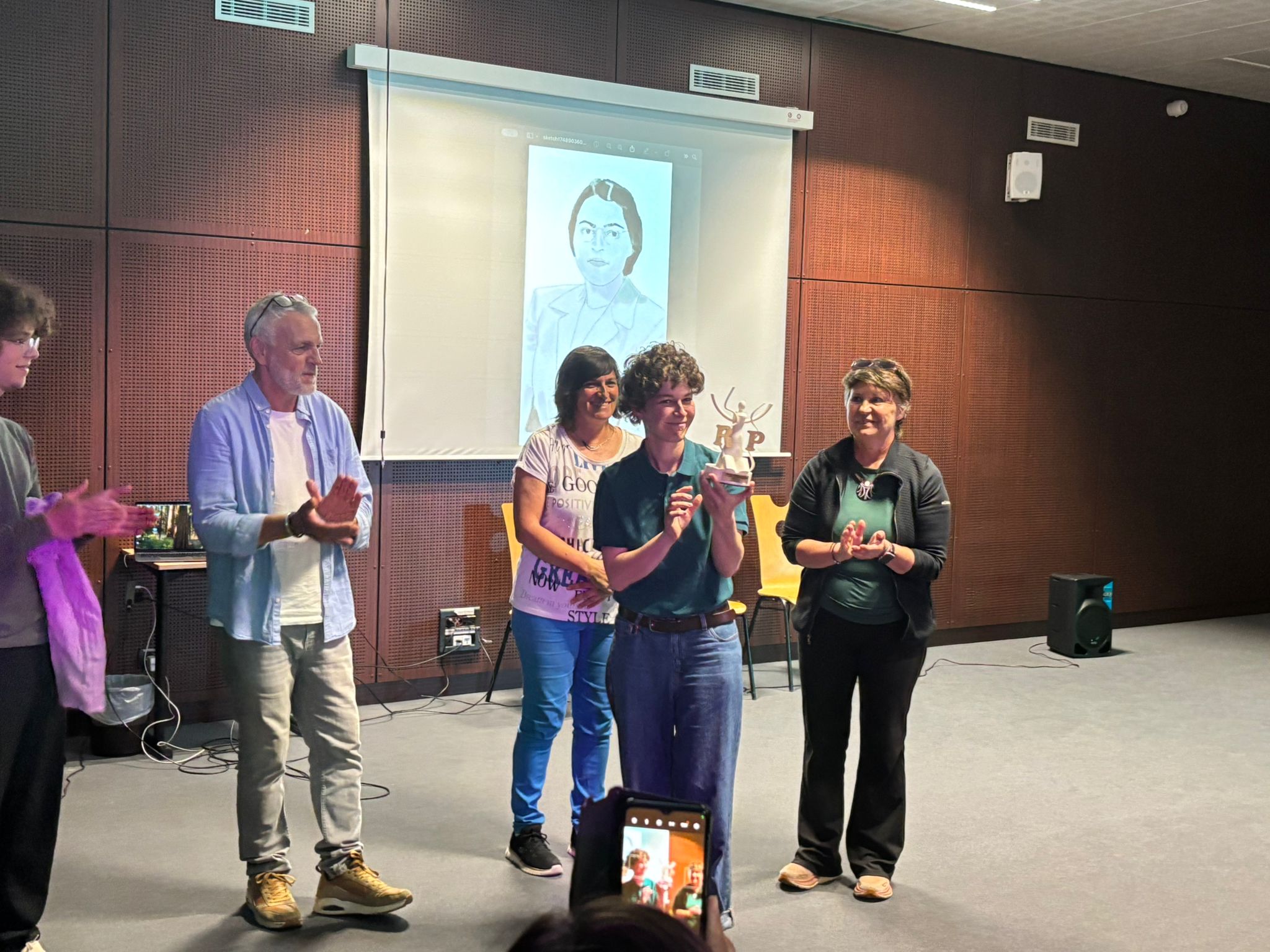 Puis le trophée a été remis à la lauréate, il a été imaginé conçu et réalisé par les élèves de 1STI2D, dans le cadre d’un projet Street Art conduit par Mme Echevarria, professeure d’espagnol.